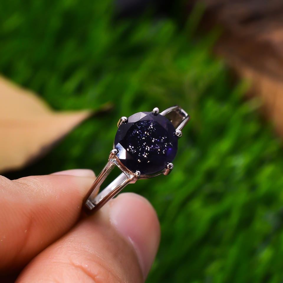 แหวนเงินสเตอร์ลิงสำหรับวันเกิด2.6กรัมแหวนพลอย iolite เหลี่ยมเพชรพลอยธรรมชาติสำหรับ92.5