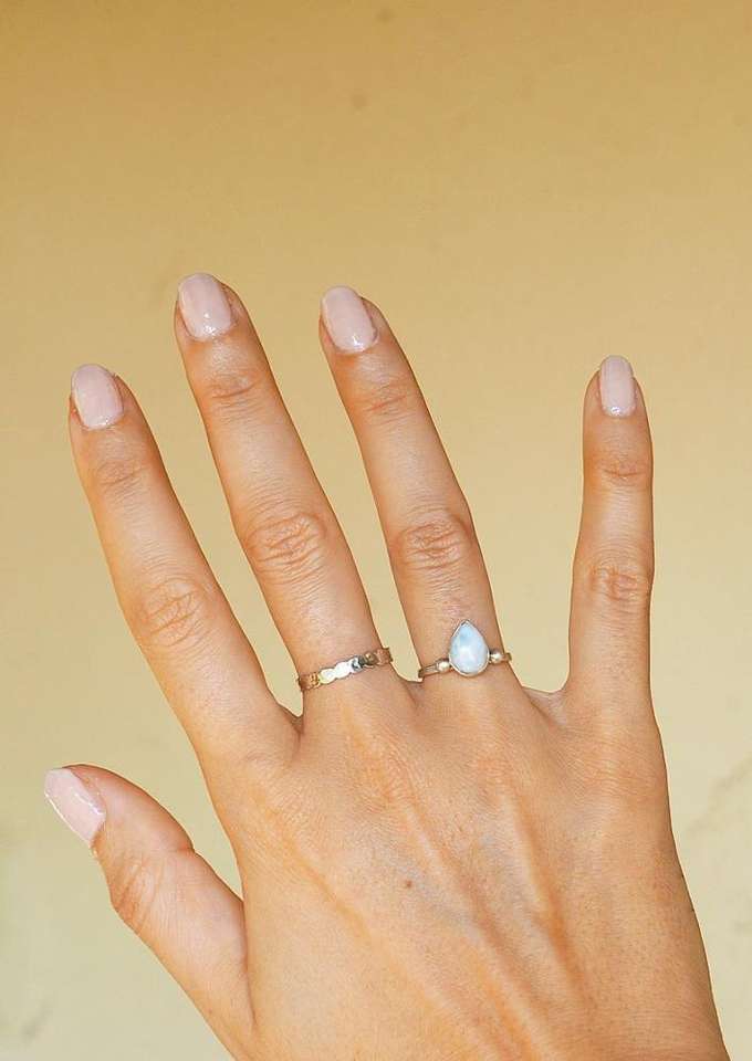 92.5 Sterling Silver Smooth Teardrop Shape Ring Gold Polished Larimar Gemstone Latest Simple Classic Design for Party