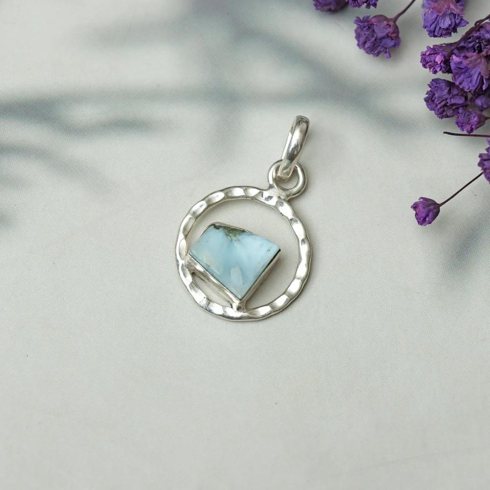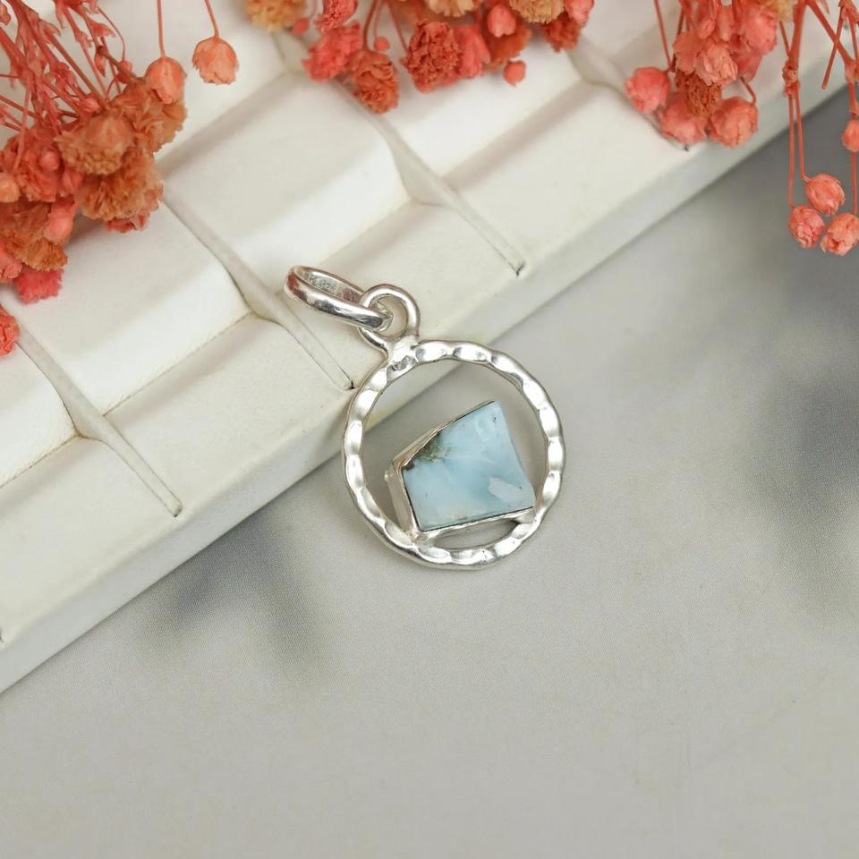 92.5 Sterling Silver Uncut Blue Larimar Rough Gemstone Pendant Necklace Gold Plated Healing Crystal Jewelry with Box Chain