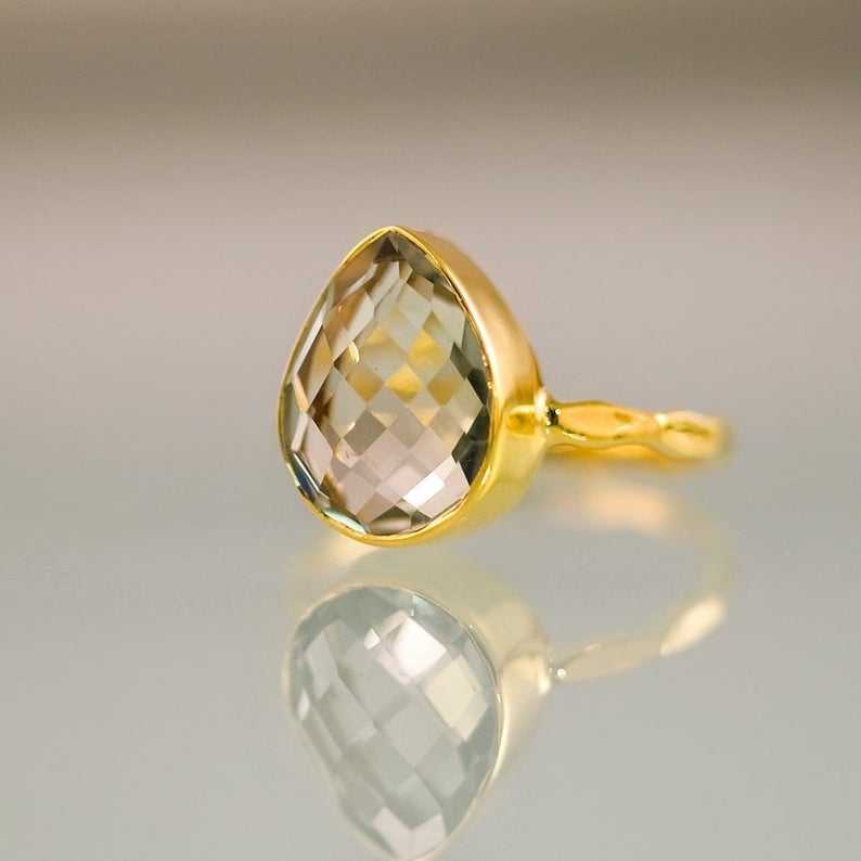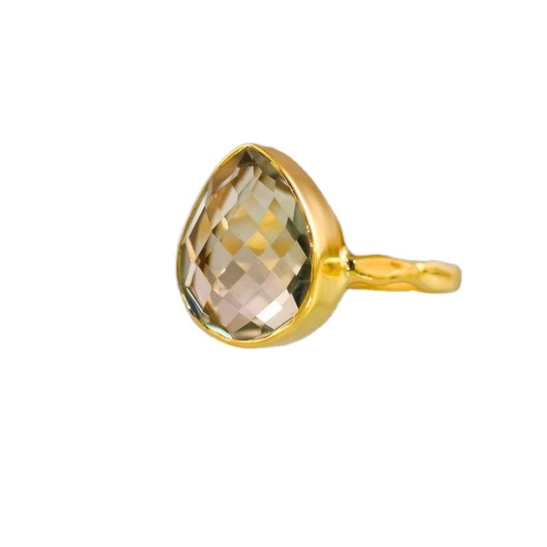 แหวนพลอยอเมทิสต์เหลี่ยมเพชรพลอยสีเขียวธรรมชาติขัดเงาสีเงินสเตอร์ลิง92.5พร้อมทอง