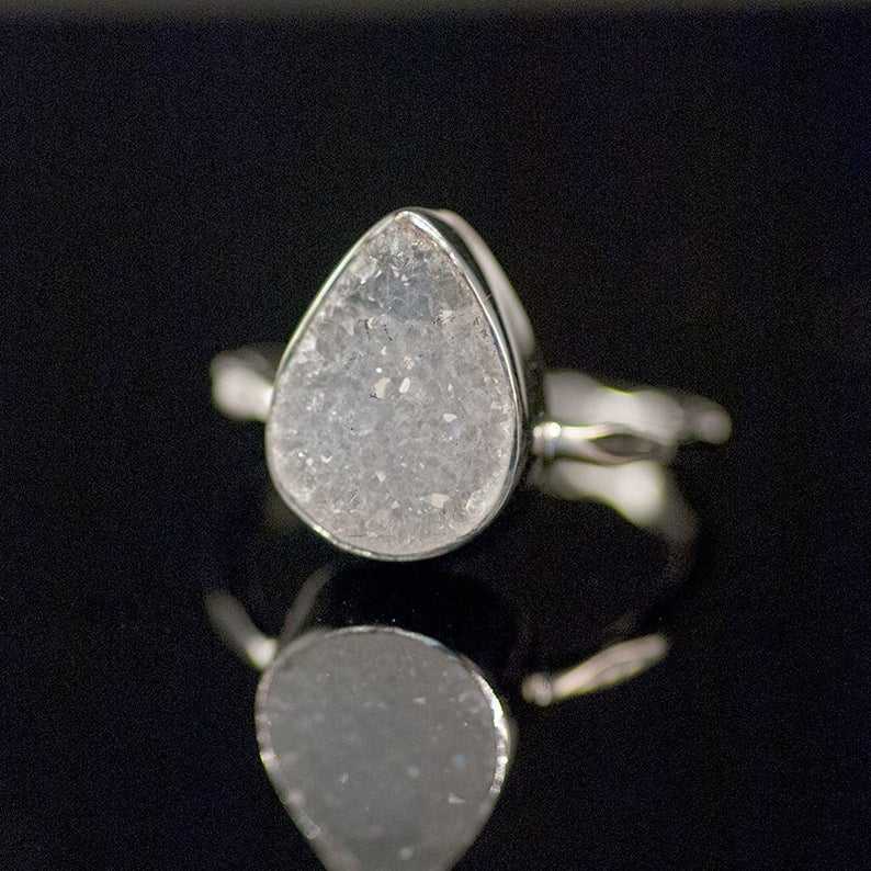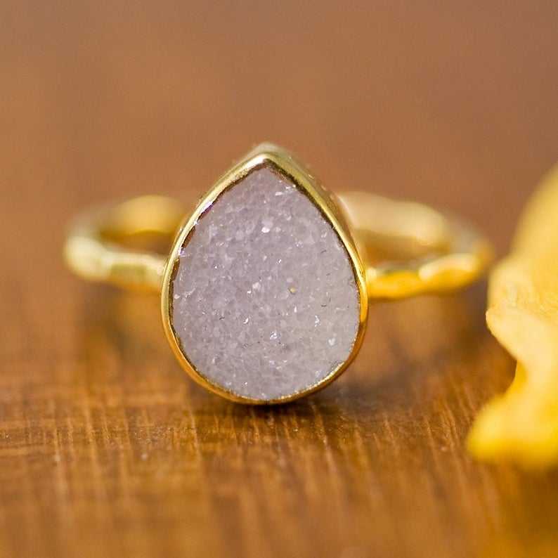 แหวนเงินแท้สีทอง92.5ทำมือรูปหยดน้ำแร่อัญมณีสีขาวขัดเงาขายส่ง