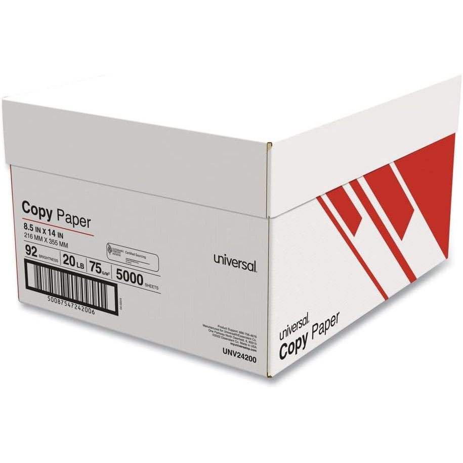 กระดาษถ่ายเอกสาร 92 ไบรท์เนส 20 ปอนด์ ขนาด 8-1/2 x 14 นิ้ว สีขาว 5000 แผ่น/กล่อง น้ำหนักเบา ขนาด A4 80 แกรม