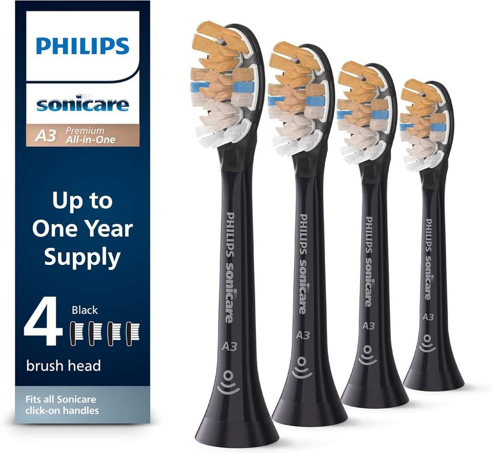 92. Philips Sonicare A3 All-in-one หัวแปรงสีฟันไฟฟ้าของแท้สำหรับเปลี่ยนสีดำ4แพ็คหนึ่งปีจัดหา HX9094/95
