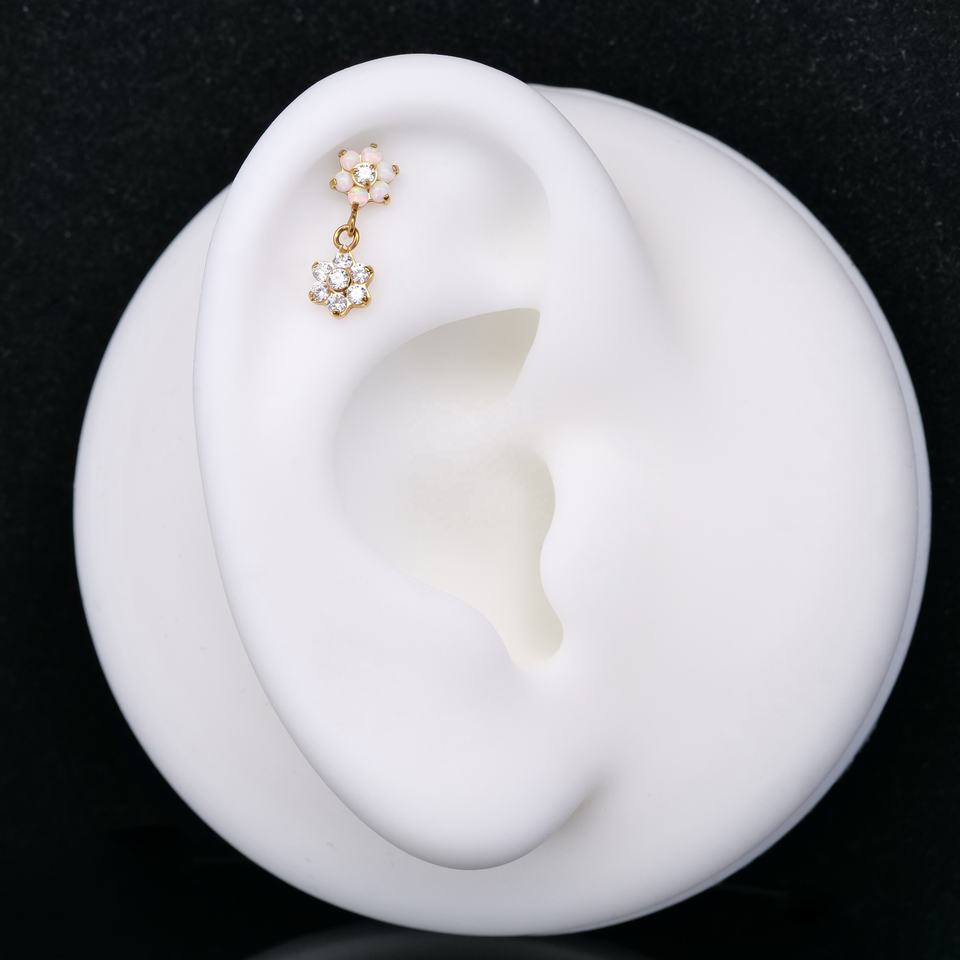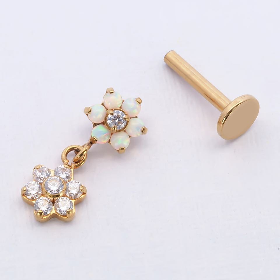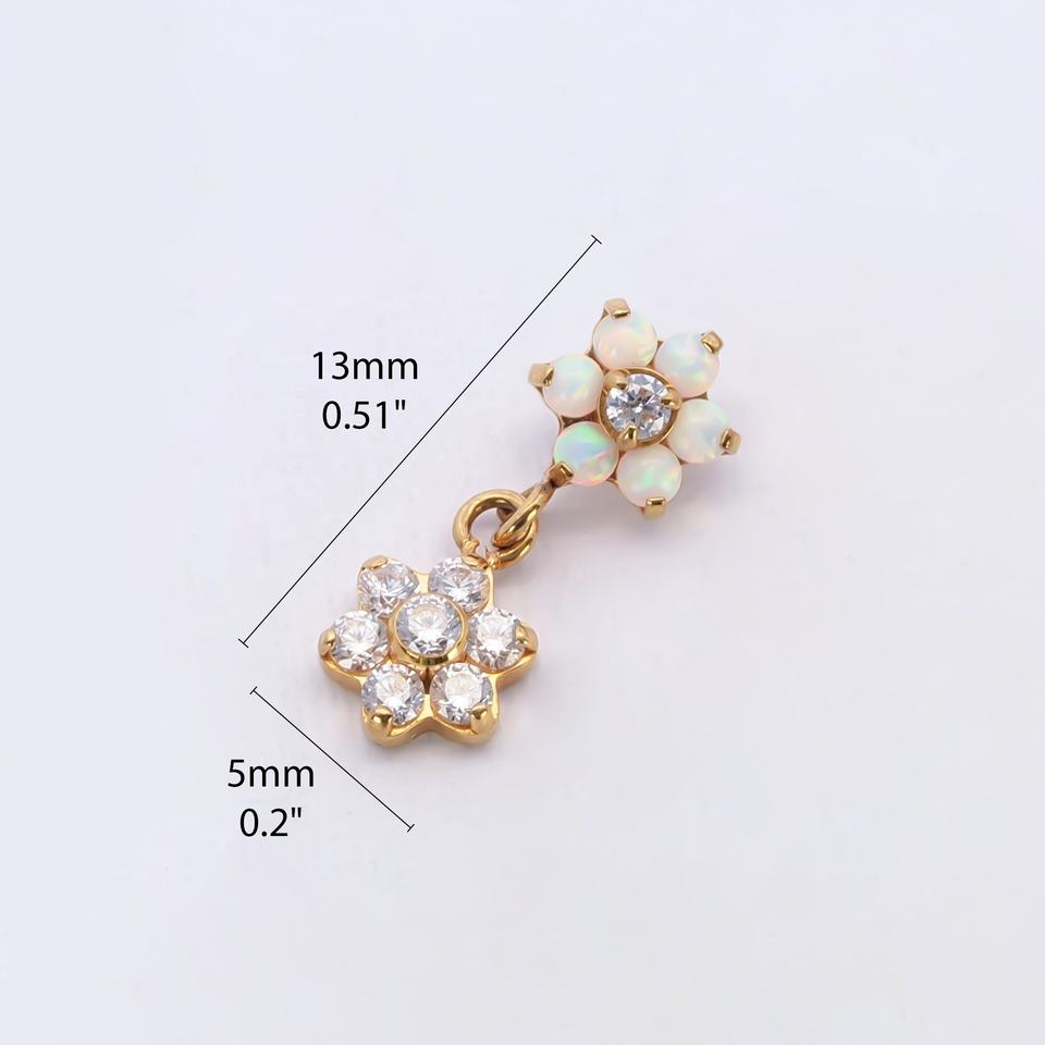 ต่างหูไทเทเนียมรูปดอกไม้ประดับโอปอลและเพชร CZ สำหรับเจาะกระดูกอ่อนหู ห่วงหู ทาร์กัส เครื่องประดับเจาะริมฝีปาก จี้ไทเทเนียม รุ่น 9228 DongZhiTi