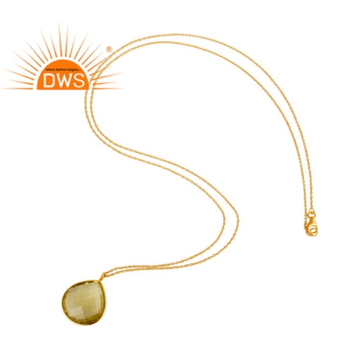 เครื่องประดับเงินแท้ 925 ขายส่ง สร้อยคอจี้ชุบทอง ดีไซน์รูปลูกแพร์ พลอยโทแพซสีเหลืองมะนาว ผู้จำหน่ายเครื่องประดับ