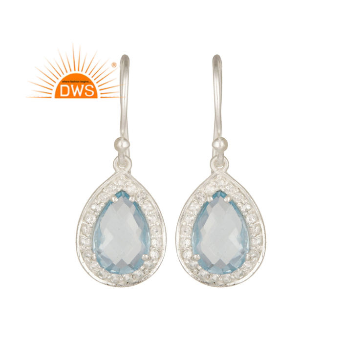 925ดีเงินสเตอร์ลิงธรรมชาติสีฟ้าบุษราคัมและสีขาวพลอยบุษราคัมห้อยเครื่องประดับสำหรับผู้หญิงของขวัญสำหรับผู้หญิง