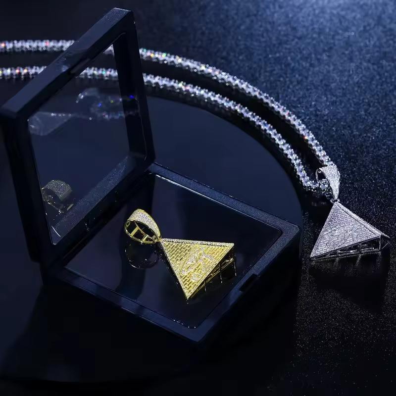 จี้สร้อยคอรูปพีระมิดอียิปต์ลายดวงตาแห่งฮอรัส เงินแท้ 925 ฮิปฮอป ประดับเพชรโมอิสซาไนต์สี D แบบไมโครเพฟ