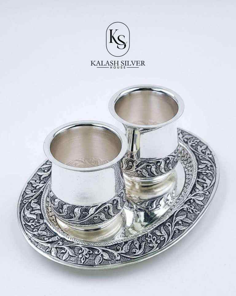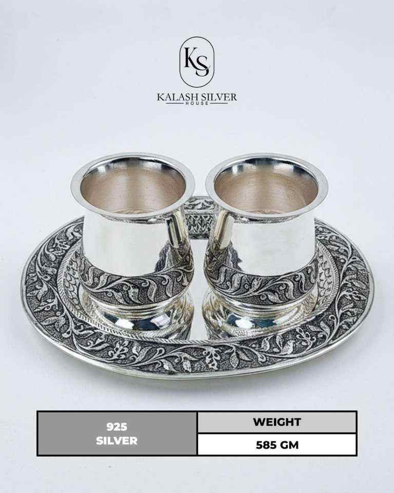 ชุดแก้วเงินแท้ 925 พร้อมถาด งานฝีมืออินเดีย เครื่องดื่มเงินสำหรับใช้ในบ้าน รับประทานอาหารแบบดั้งเดิม และของขวัญระดับพรีเมียม