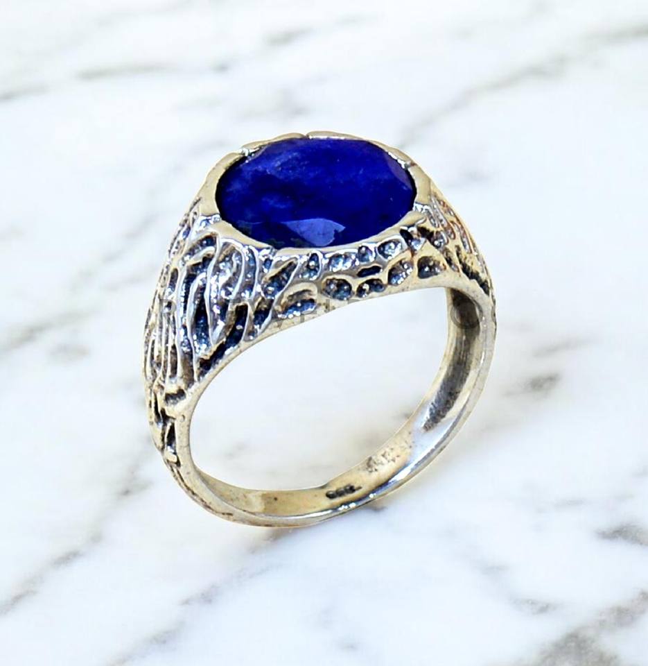 แหวนไพลินสีน้ำเงินทรงกลมคุณภาพสูง เงินแท้ 925 แหวนทำมือ เครื่องประดับ