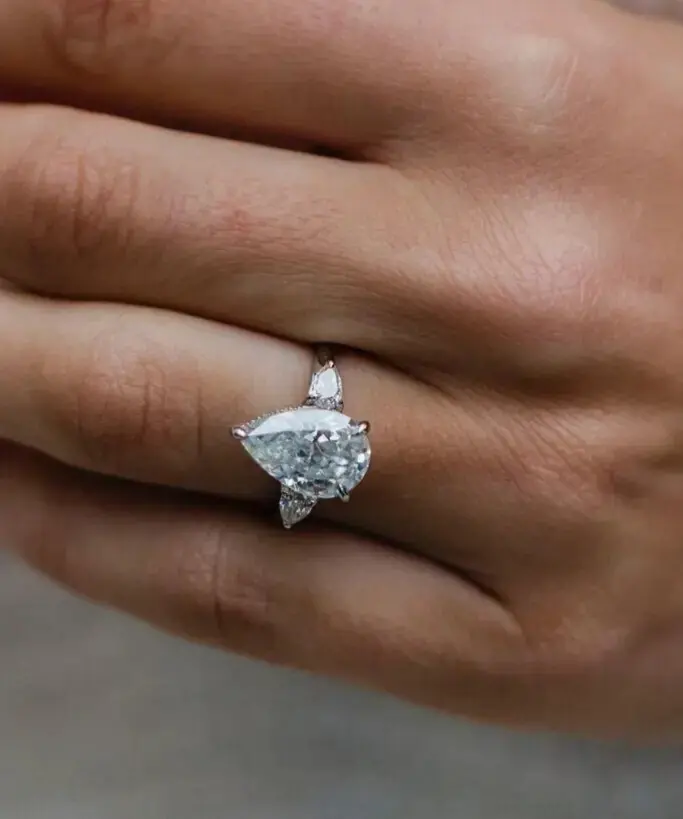แหวนเพชรโมอิสสาม VVS1สำหรับตัดรูปลูกแพร์1.80CTW เงิน925