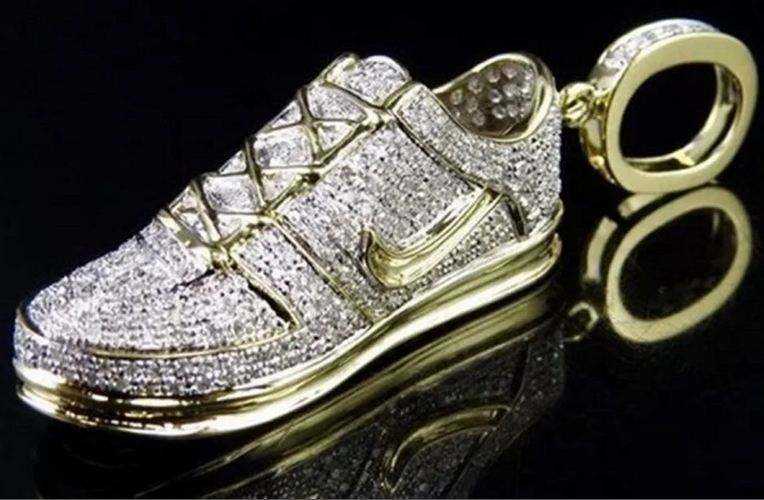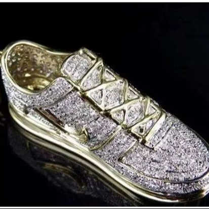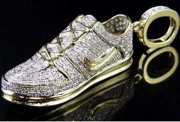 จี้และเครื่องประดับรูปรองเท้าทรงฮิปฮอปแฟชั่นสำหรับคนรักกีฬา ทำจากเงินแท้ 925 ชุบทอง 14K ประดับด้วยมอยส์ซาไนต์