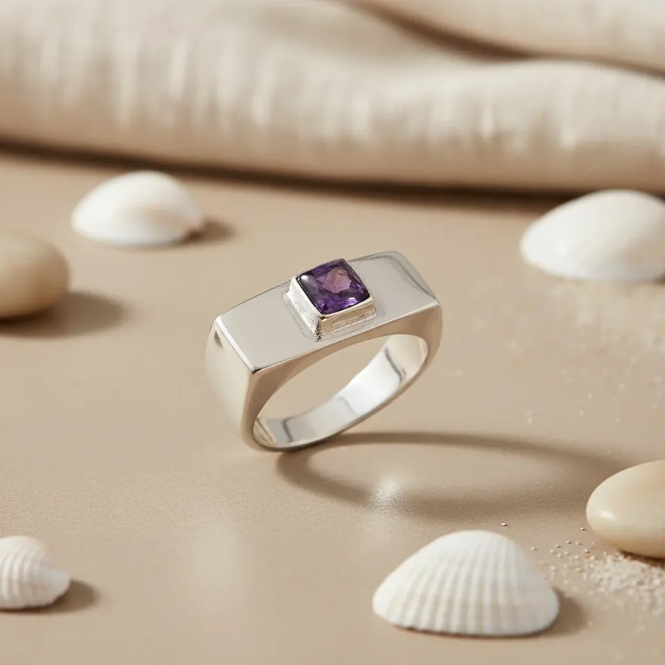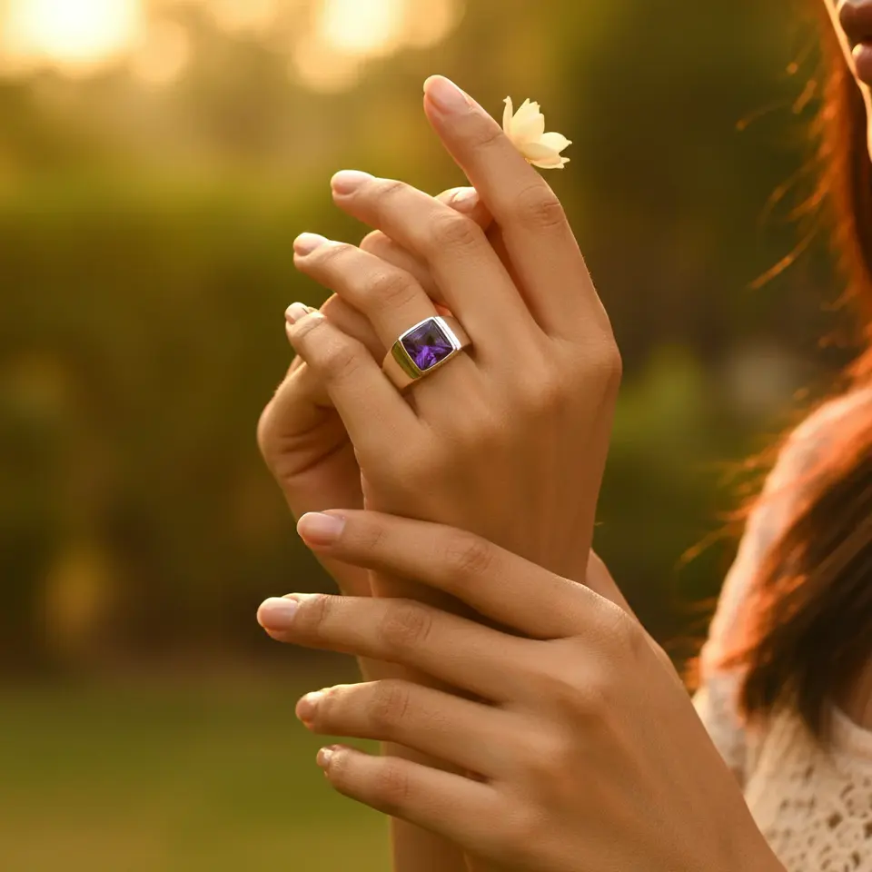 แหวนเงินแท้ 925 ประดับพลอยอเมทิสต์ สำหรับผู้หญิง เครื่องประดับอัญมณีสุดหรู