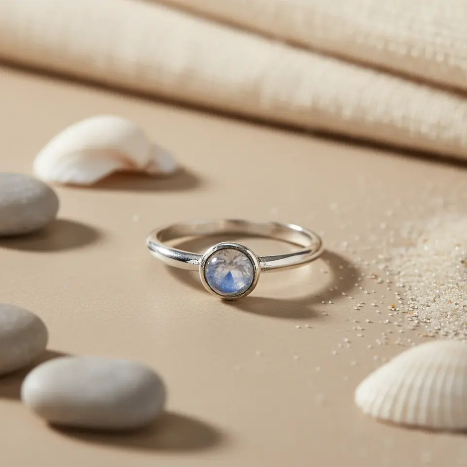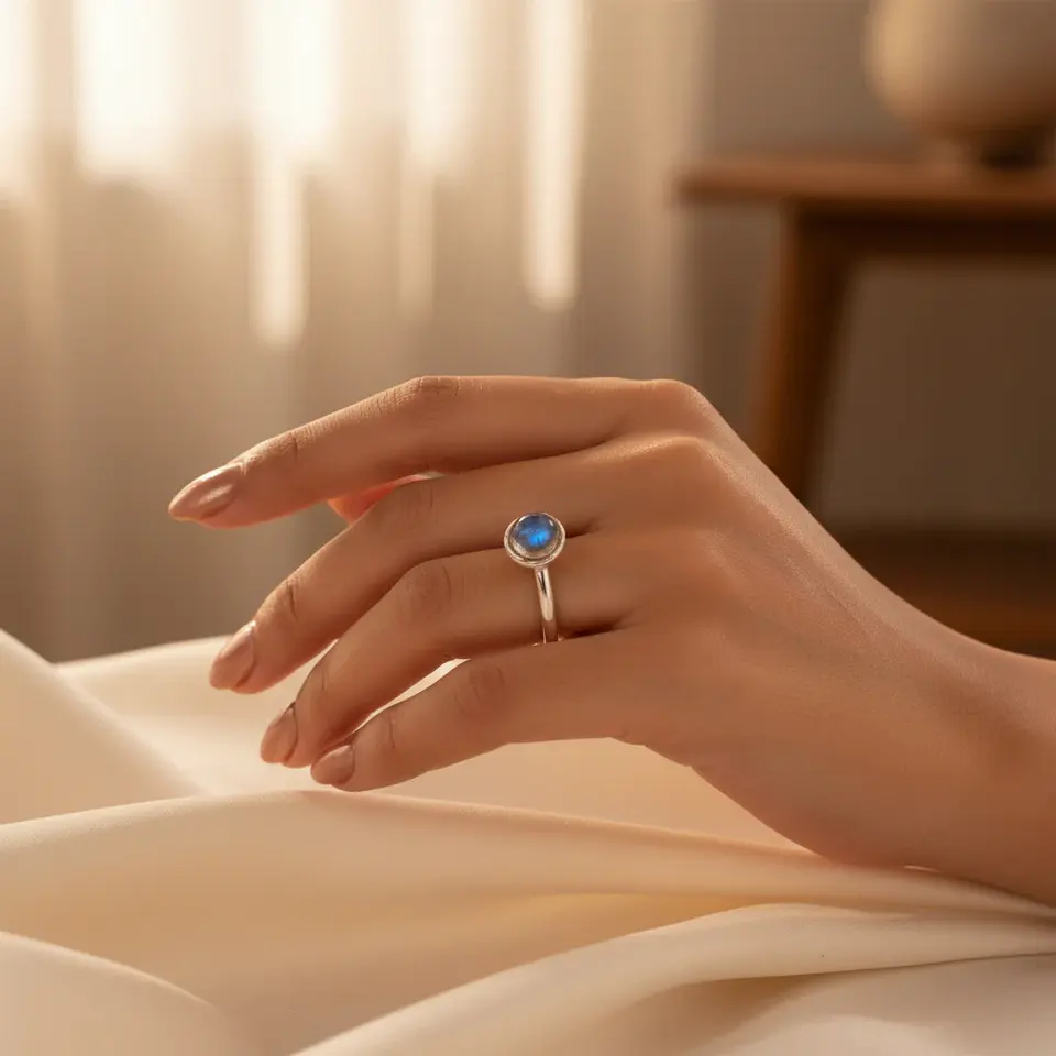 แหวนเงินแท้ 925 ประดับด้วยบลูมูนสโตน สำหรับผู้หญิง เครื่องประดับอัญมณีสุดหรู
