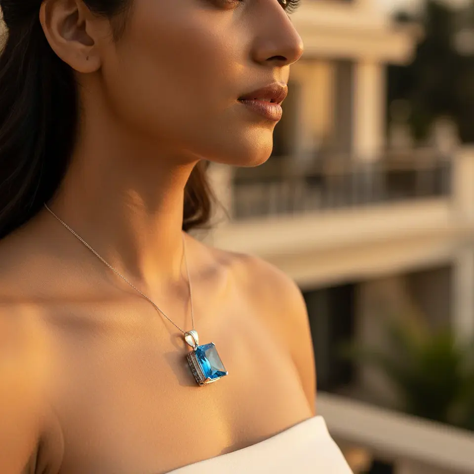 จี้เงินแท้ 925 ประดับบลูโทแพซ ดีไซน์หรูหราสำหรับผู้หญิง เครื่องประดับทางศาสนา พร้อมเพชร โรสโกลด์ และชาร์มแพลตตินั่ม