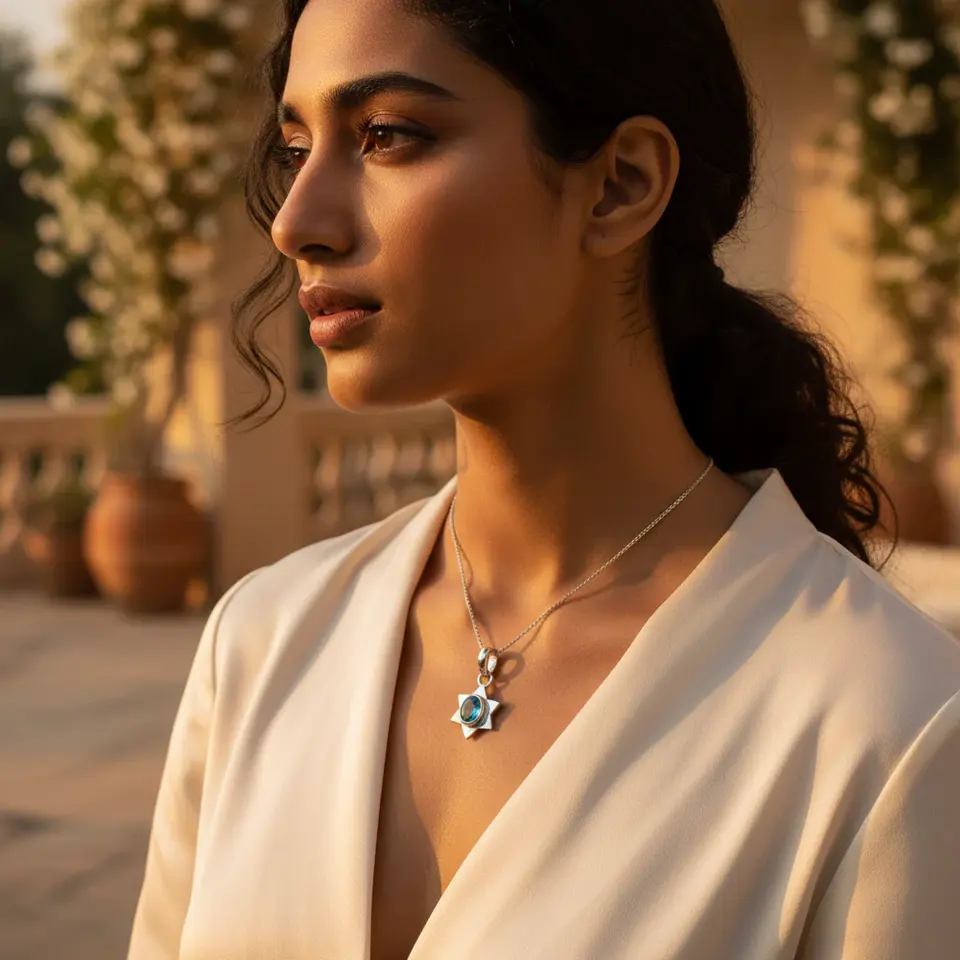 จี้รูปดาวประดับบลูโทแพซเงินแท้ 925 สำหรับผู้หญิง ชุบทองคำสีกุหลาบ เครื่องประดับอัญมณ์ศาสนา ประดับเพชร ของขวัญทางศาสนา
