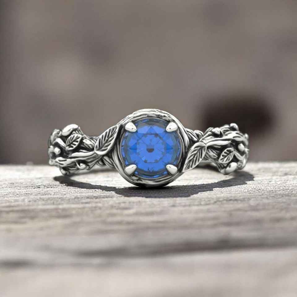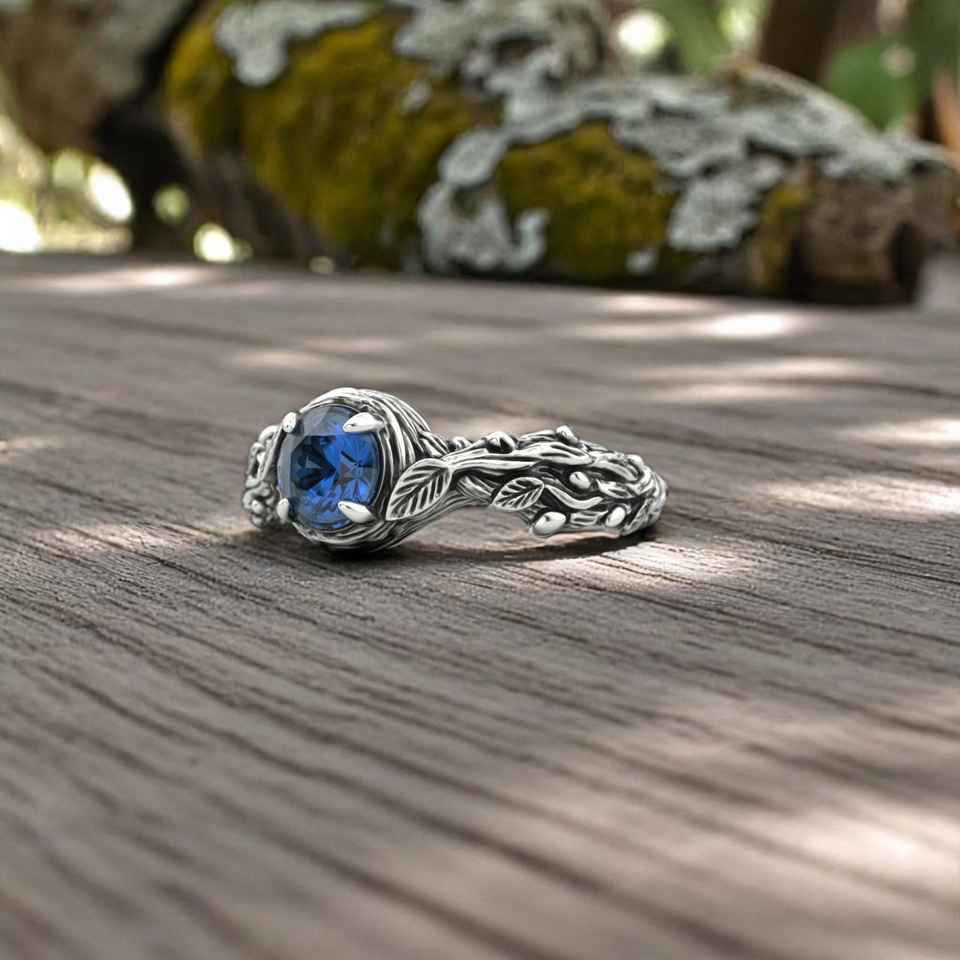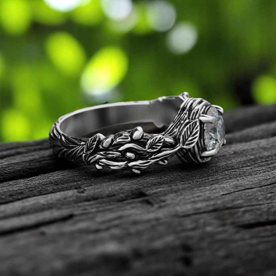 แหวนใบโบฮีเมียนสีเงิน925ได้รับแรงบันดาลใจจากธรรมชาติแถบเถาอัญมณีโบฮีเมียนแบบชนบทพร้อมวงแหวนแฟชั่นจากสาขาพฤกษศาสตร์