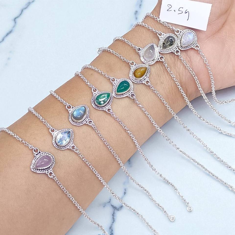 Sterling Silver Stone Braceletสร้อยข้อมือกำไลหรือประเภท
