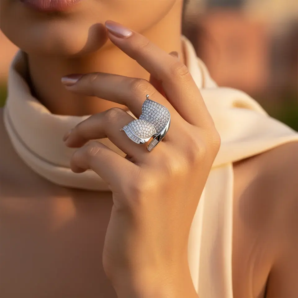 แหวนนิรันดร์ฝังผีเสื้อเงิน 925 สำหรับผู้หญิง-ทันสมัยและอินเทรนด์