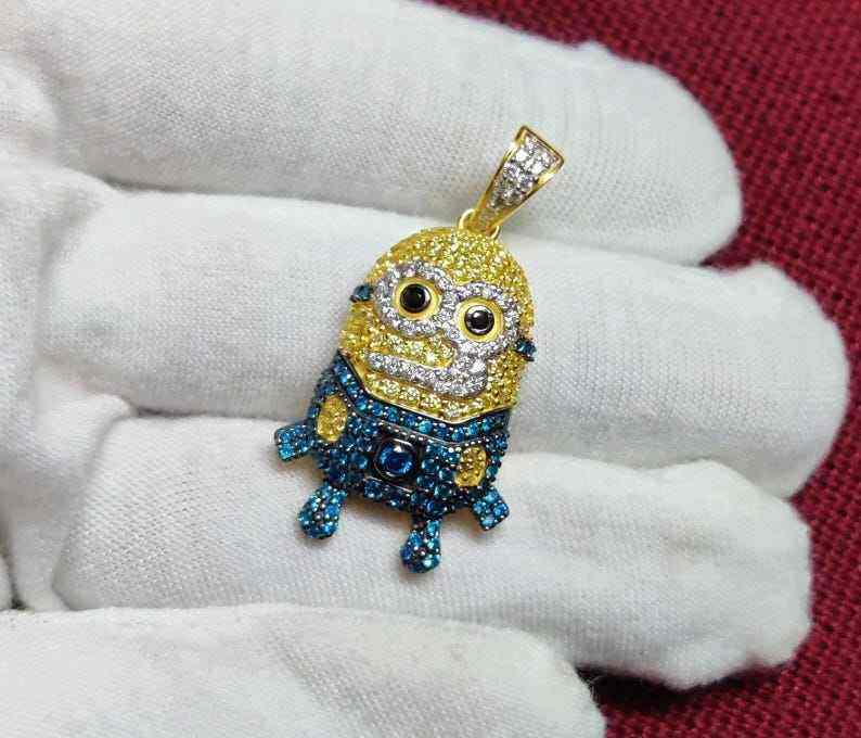 925 Silver Cartoon Head Hip Hop Fine Jewelry Pendants & Charms with Moissanite Diamond Gold Plated Pendants & Charms