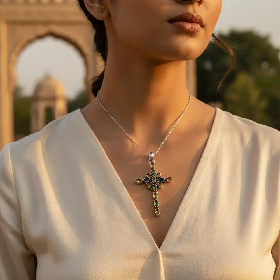 จี้เงินแท้ 925 รูปทรงกางเขน ประดับพลอย งานแฮนด์เมด ชุบทองคำขาวและโรสโกลด์ เครื่องประดับสำหรับผู้หญิง ชุบโรเดียม จี้ห้อยคอ ของขวัญ