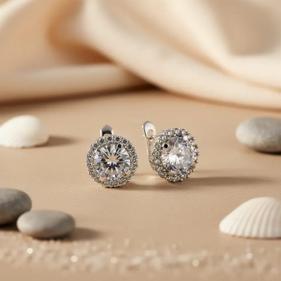 ต่างหูคริสตัลทรงรัศมีประดับเพชรคิวบิกเซอร์โคเนีย เงินแท้ 925 ของขวัญสำหรับผู้หญิง