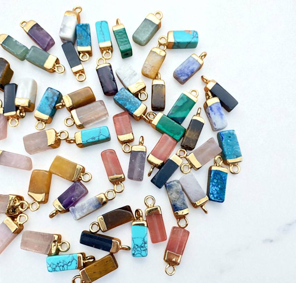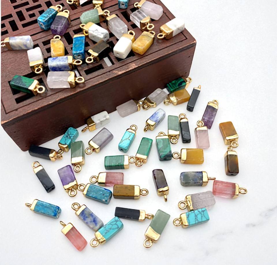 จี้พลอยอัญมณีทรงลูกบาศก์สีเงิน925-จี้อัญมณีหลากสีชุบทอง