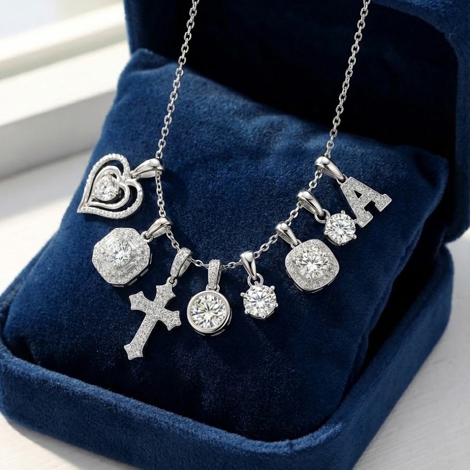 สร้อยคอจี้เงินแท้ 925 สไตล์ฮิปฮอปสำหรับผู้ชาย พร้อมใบรับรอง 1 กะรัต 2 กะรัต ประดับเพชรโมอิสซาไนต์ทรงกากบาท ตัวอักษร หัวใจ ระดับ VVS สำหรับผู้หญิง