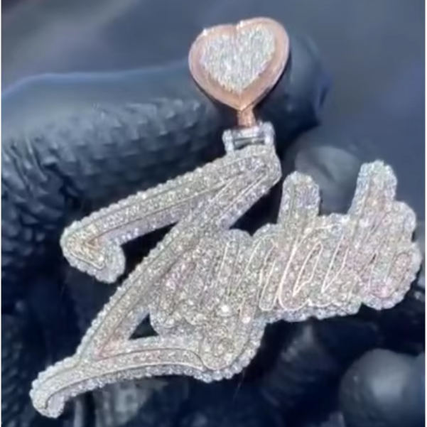จี้ตัวอักษรเงินแท้ 925 ประดับมอสซาไนต์แบบกำหนดเอง พร้อมห่วงรูปหัวใจ ประดับเพชร VVS สไตล์ฮิปฮอป ของขวัญวันเกิดสุดเพอร์เฟกต์สำหรับผู้หญิง