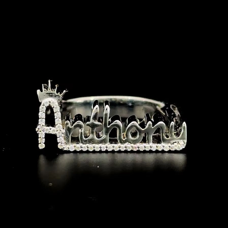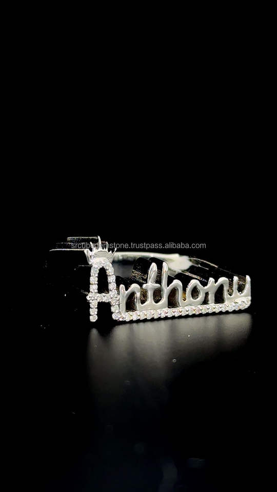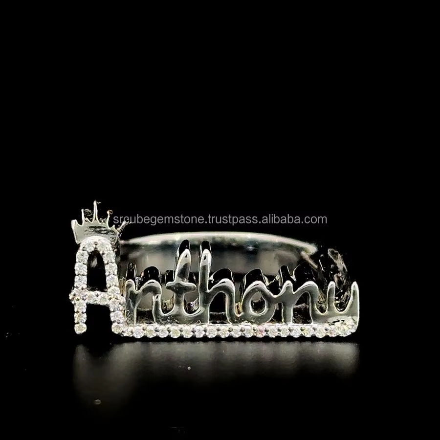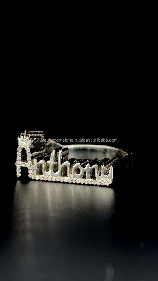 แหวนเงิน925สั่งทำชื่อ3D แบบกลวงคู่แกะสลักรูปทรงเม็ดเครื่องประดับของขวัญแต่งงานส่วนบุคคลมีเพชรสำหรับผู้หญิง