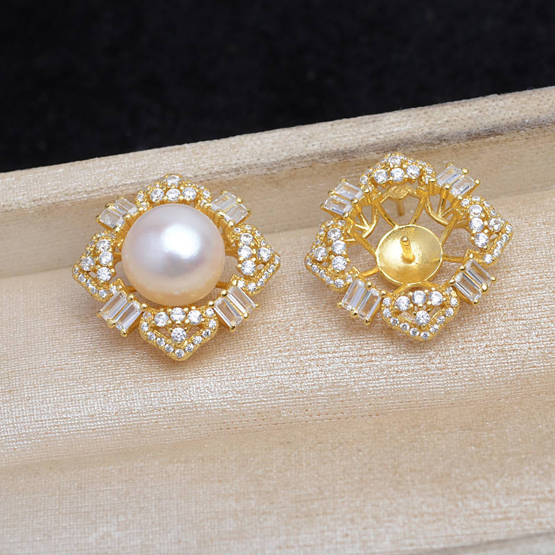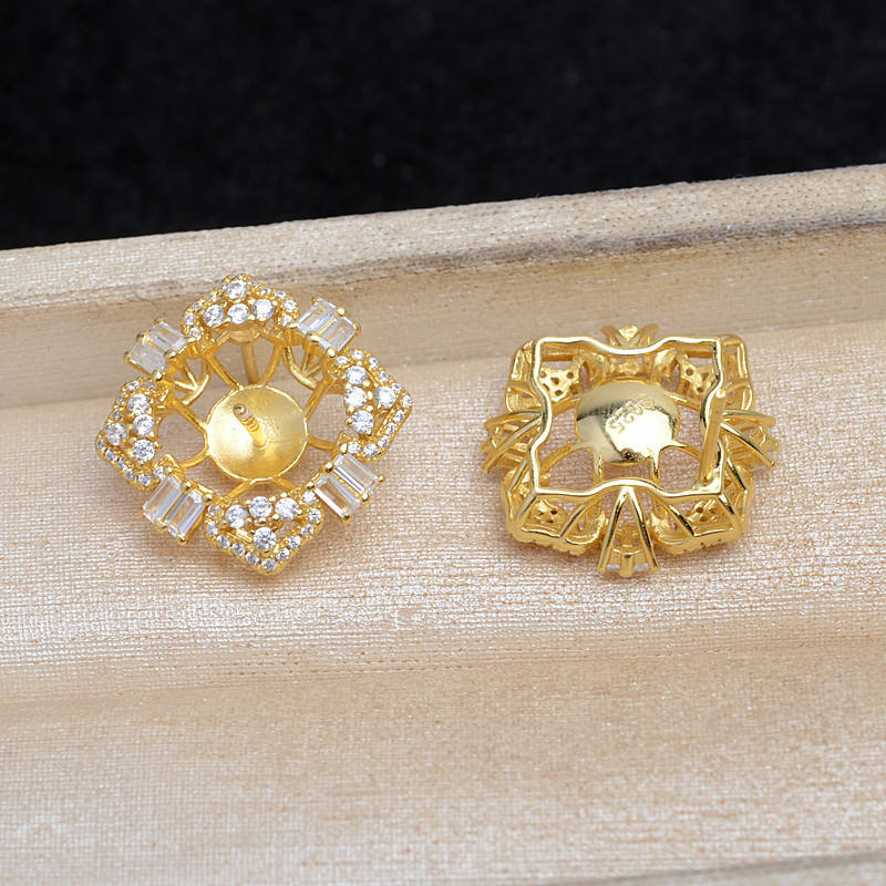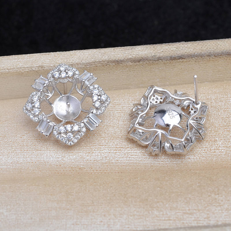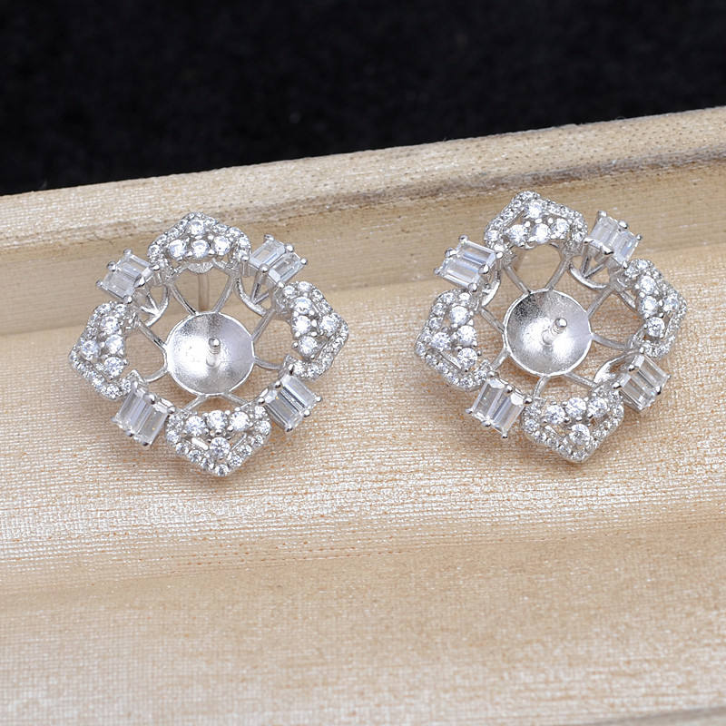 อุปกรณ์ทำเครื่องประดับมุก DIY เงินแท้ 925 รุ่น JG5920 ต่างหูรูปใบโคลเวอร์ กึ่งสำเร็จรูป 10-12 ต่างหู ประดับเพชรซิรคอน ชุบเคลือบ