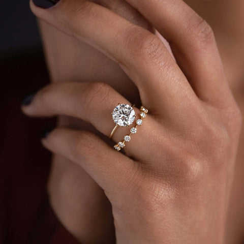 เพชรโมอิสทรงกลมสีเงินสไตล์วินเทจสุดหรูสีเงิน925พร้อมด้วยแหวนเพชรแหวนหมั้นแบบรัศมีที่ซ่อนอยู่โดย tishya Diamond