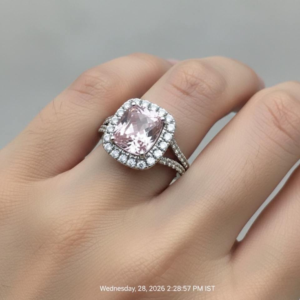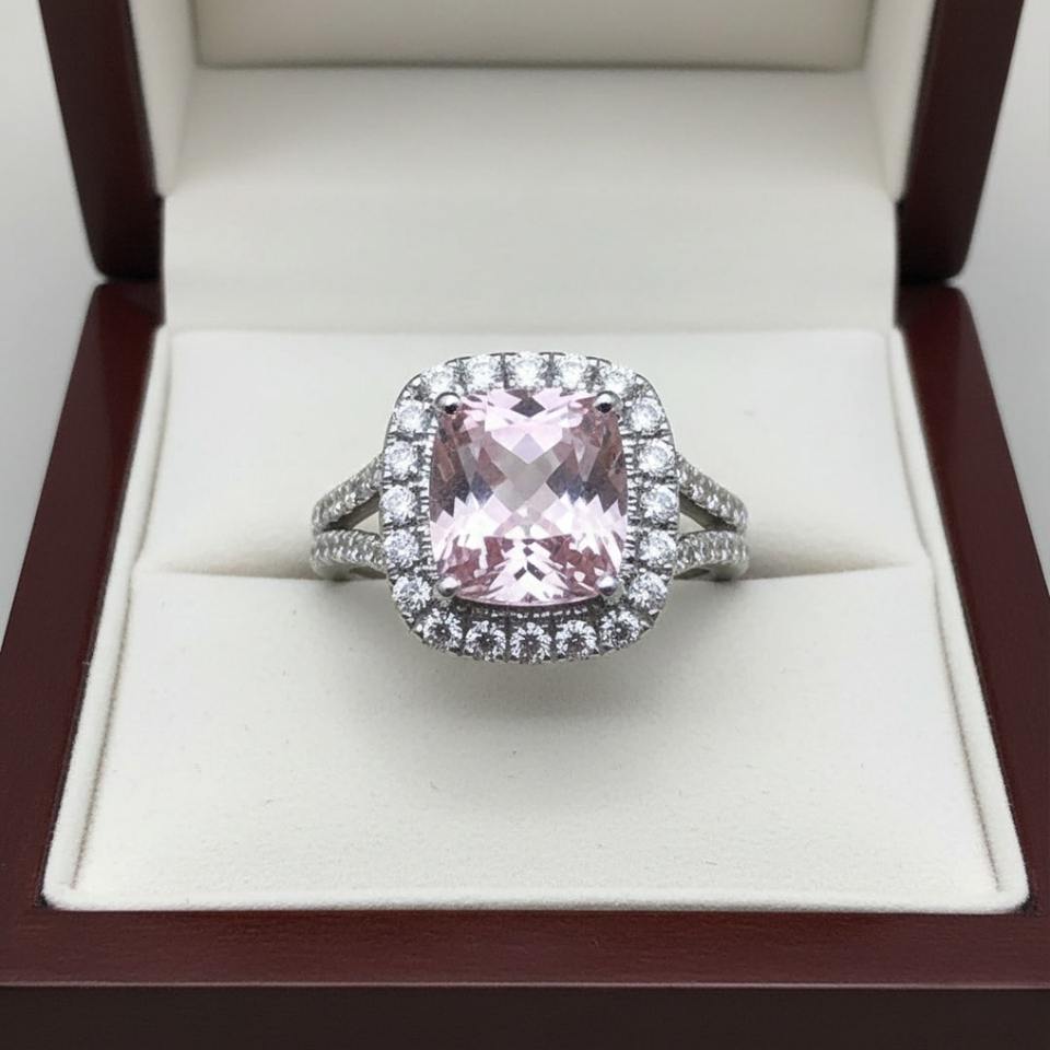 แหวนหมั้นเงินแท้ 925 ประดับมอร์แกไนต์สีชมพูอ่อนธรรมชาติ เพชร CZ ดีไซน์มินิมอลแบบช่องฝัง รับรองโดยผู้เชี่ยวชาญ ของขวัญแต่งงาน