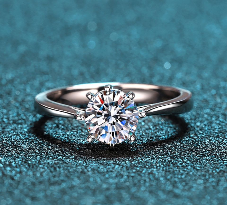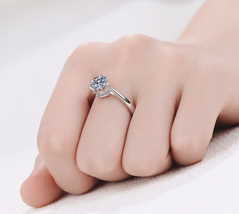 แหวนเพชรโมอิสประกายเพชรสำหรับทดสอบผ่านมา1กะรัตของขวัญแต่งงานแหวนเงิน925