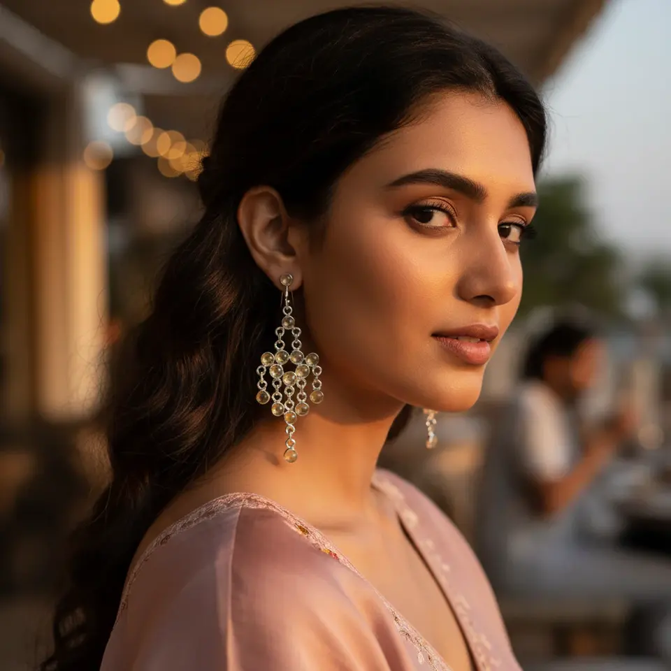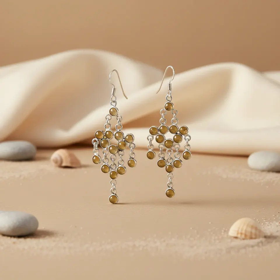ต่างหูเงินแท้ 925 ดีไซน์แบบโคมระย้า ประดับพลอยสีเขียว สำหรับผู้หญิง