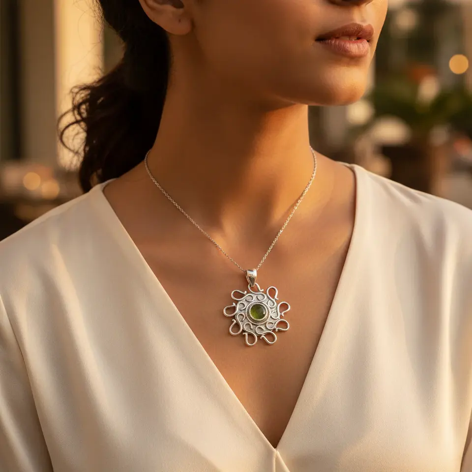 สร้อยคอจี้เงินแท้ 925 ประดับเพอริดอท สำหรับผู้หญิง ของขวัญ เครื่องประดับ