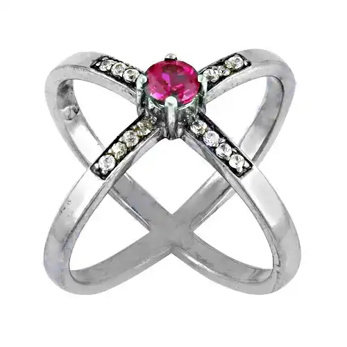 "925 Silver Fashionable Trendy Ruby Inlay Ring-Women's Size Free-Vintage Statement Style"