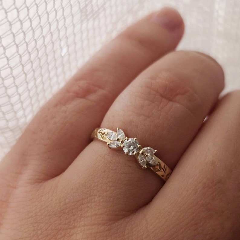 แหวนเพชรโมอิสอัญมณีชั้นดีเงิน925แหวนหมั้นดอกไม้แสนอร่อยทรงกลมประดับเพชรเม็ดสีทองแท้สำหรับงานเลี้ยง