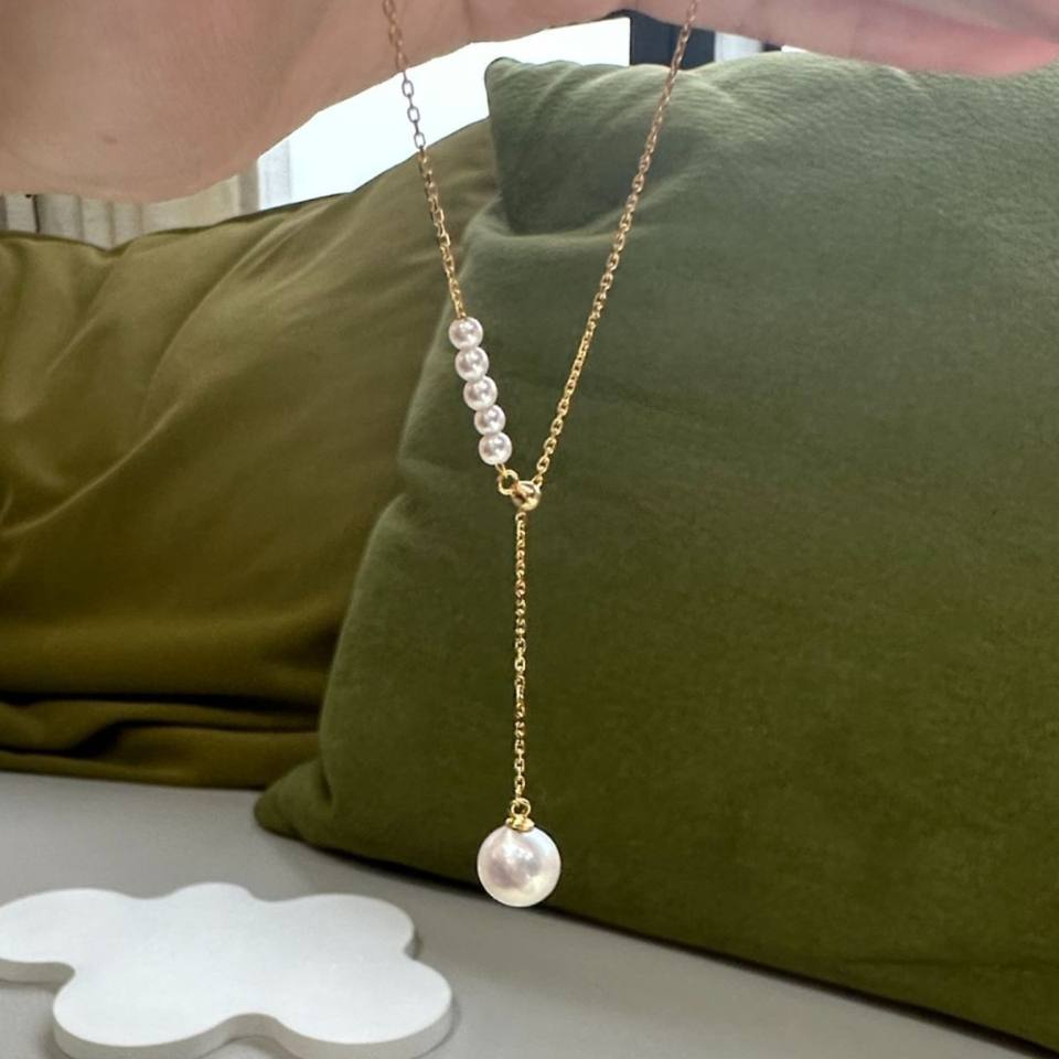 สร้อยคอจี้เงินแท้ 925 ประดับด้วยไข่มุกน้ำจืดทรงกลมธรรมชาติ ขนาด 3-3.5-9-10 มม. ดีไซน์เรียบง่าย