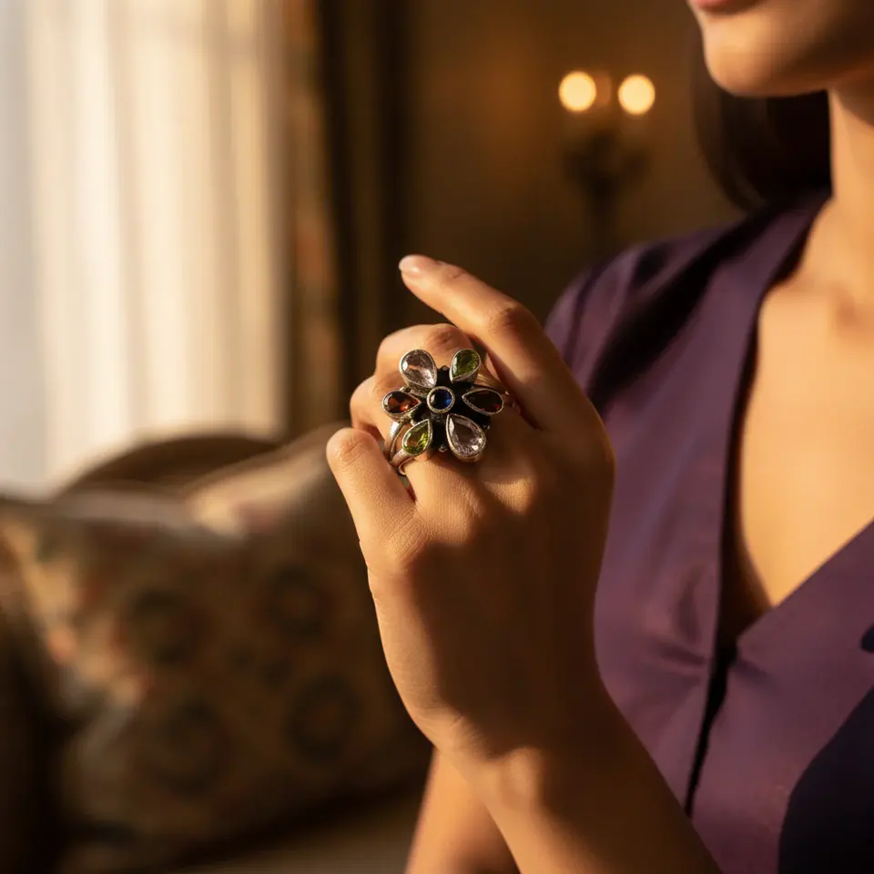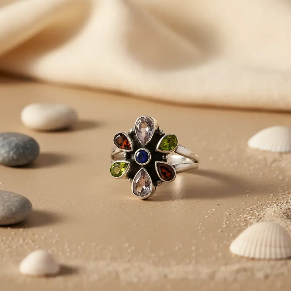 แหวนเงินแท้ 925 ประดับพลอยรูปดอกไม้ ดีไซน์ทันสมัย ฝังเพชร CZ สำหรับผู้หญิง ชุบทองแดง วัสดุหลัก ของขวัญ