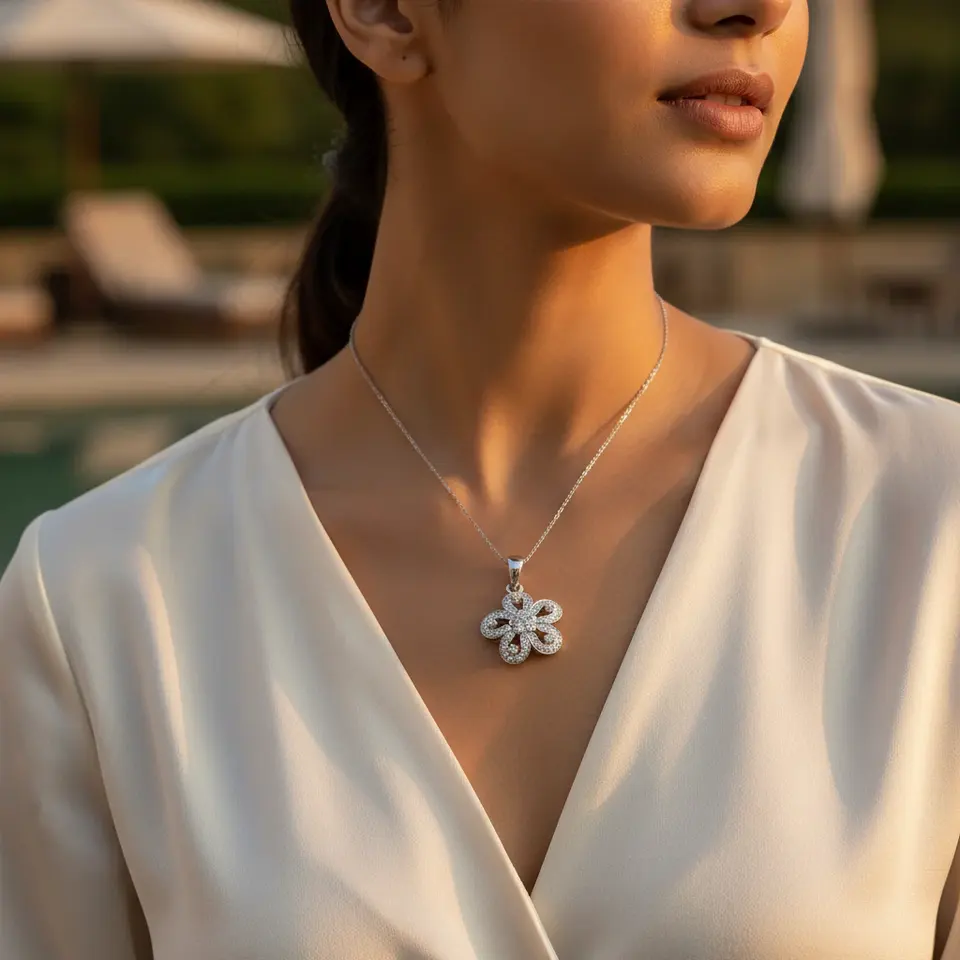 สร้อยคอจี้ดอกไม้เงินแท้ 925 ประดับเพชร ดีไซน์หรูหรา