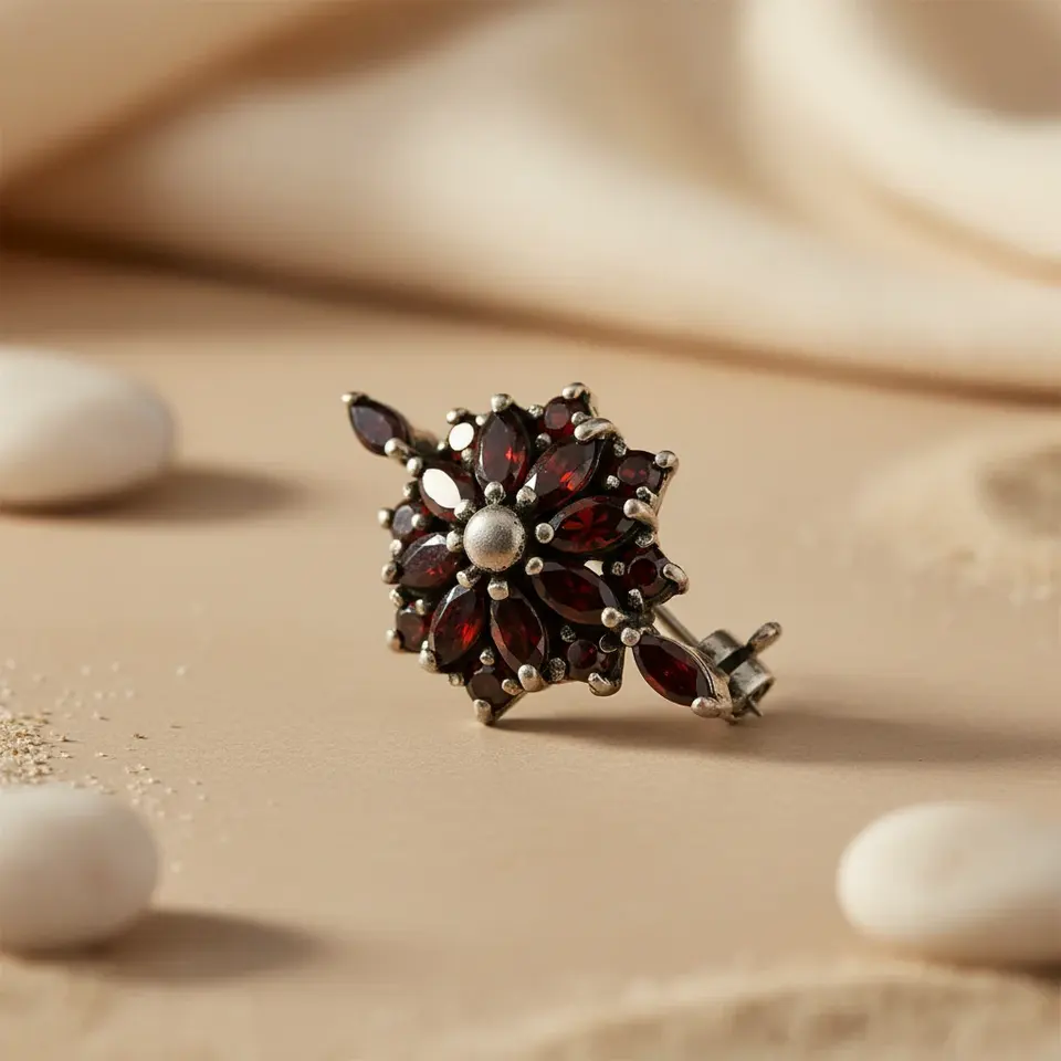 ต่างหูเงินแท้ 925 ประดับพลอยโกเมนรูปดอกไม้ สำหรับผู้หญิง สไตล์วินเทจ ชุบทอง ประดับมุก เพชร และมอยส์ซาไนต์ เหมาะสำหรับงานแต่งงานและสวมใส่ในชีวิตประจำวัน