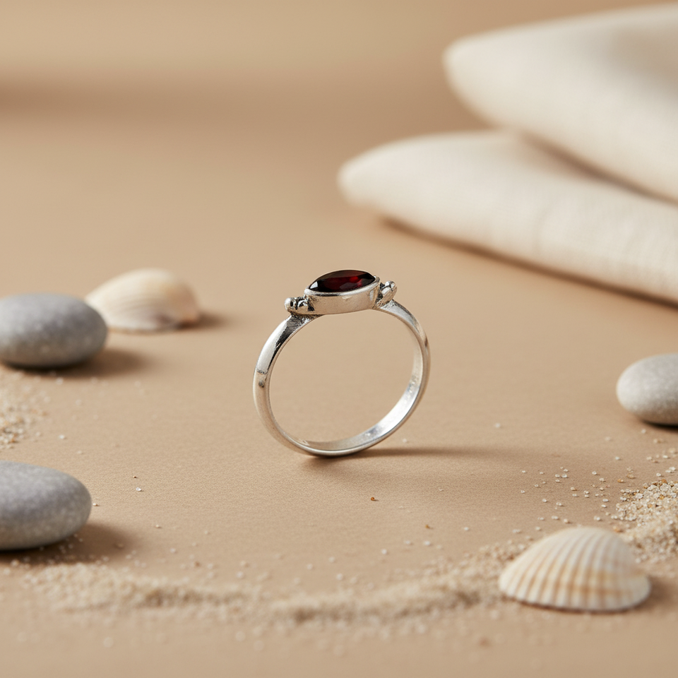 แหวนเงินแท้ 925 ประดับพลอยโกเมน สำหรับผู้หญิง ดีไซน์เรียบหรู ทรงรี ประดับโทแพซ งานจิวเวลรี่คุณภาพสูง พลอยธรรมชาติ คุณภาพเยี่ยม
