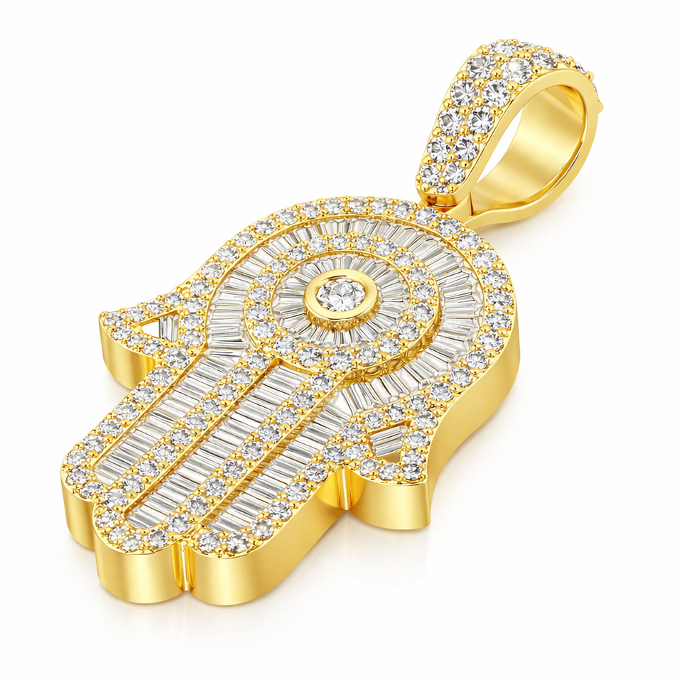 925 Silver Gold Plated Iced Hamsa Hand Religious Pendant Moissanite Diamond Hip Hop Protection Amulet Charm Unisex Custom Design