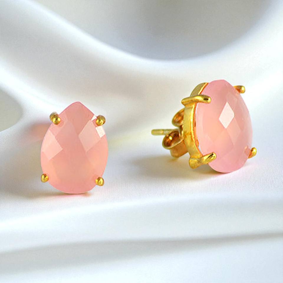 ชุดง่ามพลอยคาลซิโดนีสีชมพูประดับอัญมณีชุบทองสีเงิน925