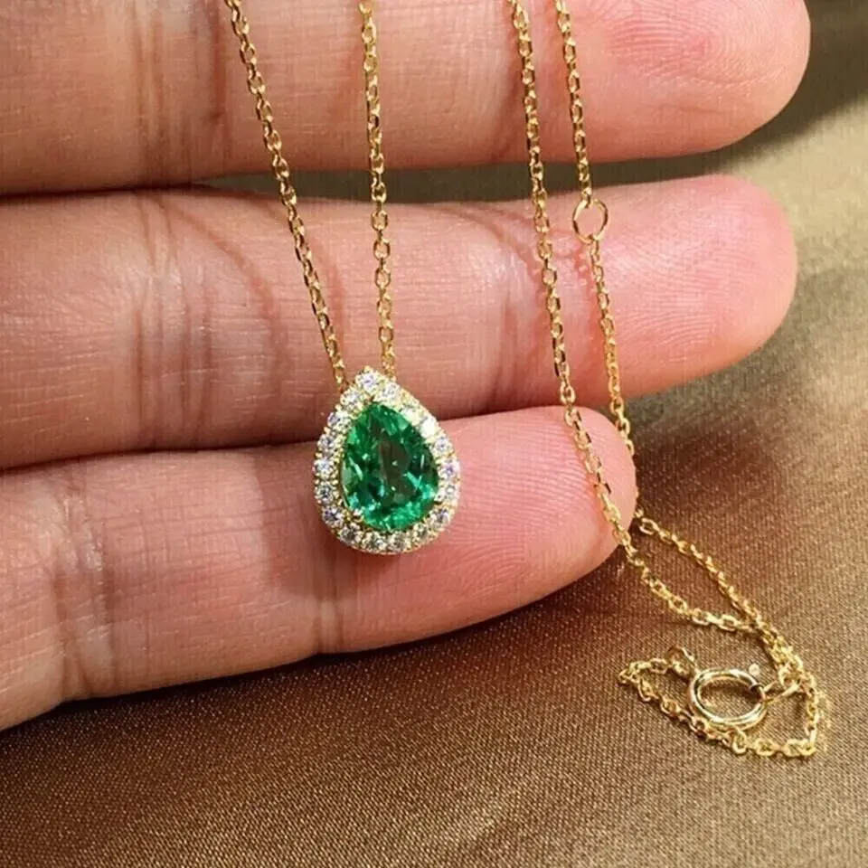 จี้เงินรูปหยดน้ำตาสุด925สำหรับผู้หญิงจี้เพชรเม็ดแพร์เพชรเม็ดมรกตและเพชรโมอิสซาไนต์สร้อยคอของผู้หญิงที่มีเสน่ห์