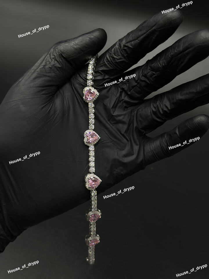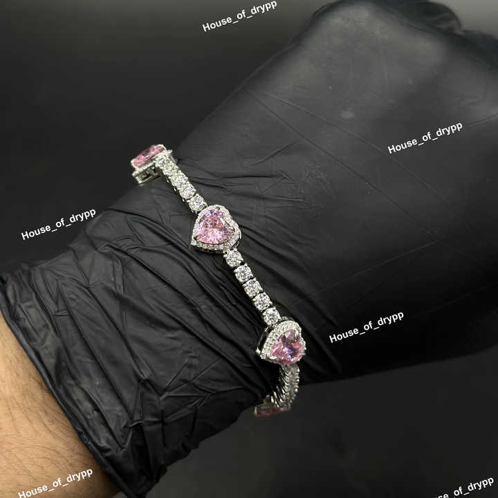 สร้อยข้อมือเทนนิสทรงหัวใจเงินแท้ 925 ประดับเพชรโมอิสซาไนต์สีชมพู ดีไซน์หรูหราโรแมนติก เหมาะเป็นของขวัญสำหรับผู้หญิง