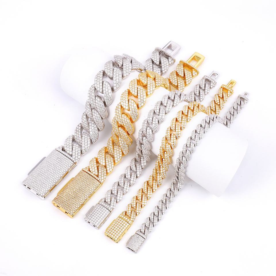 เครื่องประดับฮิปฮอปเงินแท้ 925 ประดับเพชรโมอิสซาไนต์ VVS สร้อยข้อมือแบบคิวบันลิงค์ รูปทรงโค้ง ขนาด 8 มม. 10 มม. 12 มม. สีทองขาว สีทองเหลือง สร้อยคิวบัน
