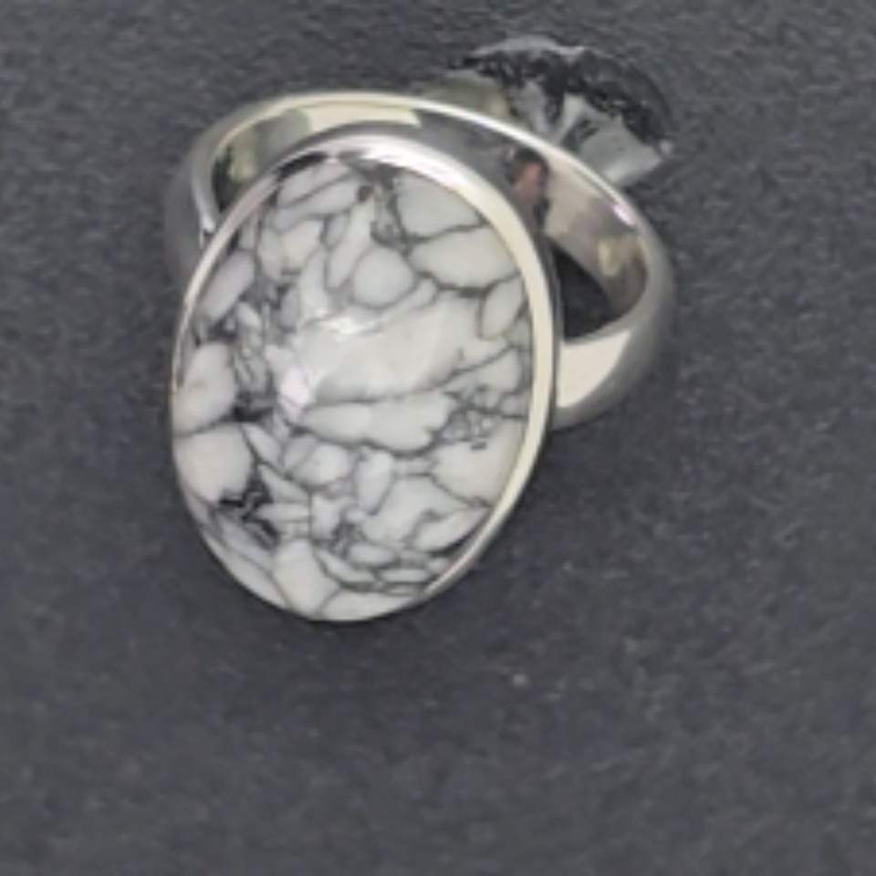แหวน925ฮาวไลท์สีเงินสำหรับผู้หญิงตกแต่งด้วยอัญมณีสีขาวทำมือ