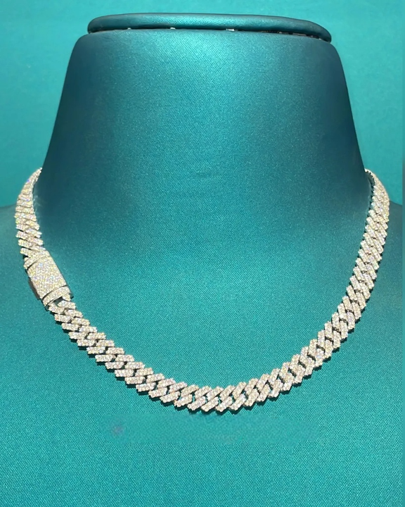 925 Silver Iced Out Cuban Link Chain Necklace with Moissanite Diamond and Box Encrusted Clasp Bold Luxury Statement Piece