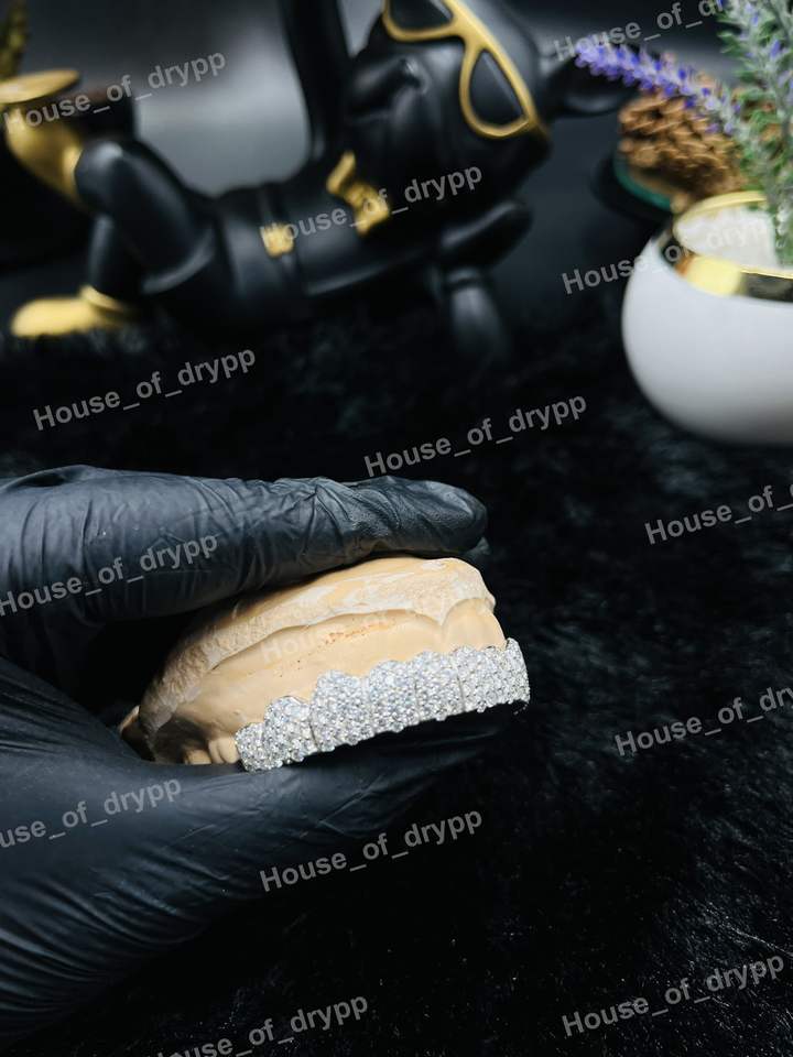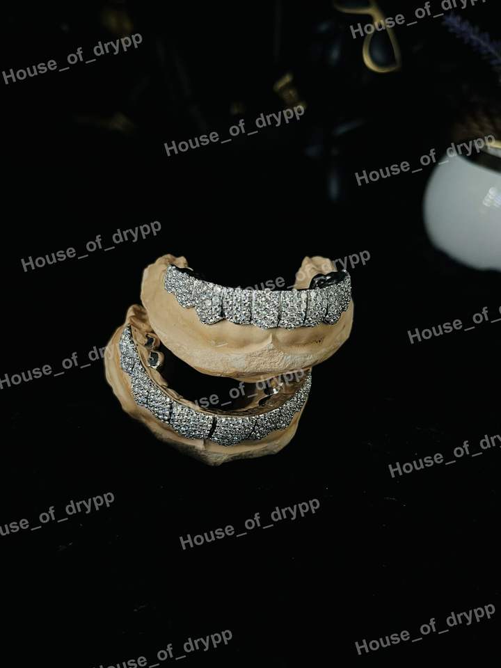 ชุดกริลล์ซเพชรเงินแท้ 925 สำหรับทุกเพศ สไตล์ฮิปฮอป แบบสั่งทำพิเศษ ครอบฟันบนและล่าง เครื่องประดับหรูหรา ของขวัญสุดพิเศษ